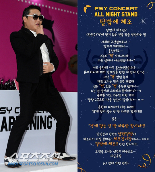 싸이는 28일 자신의 트위터에 "달밤에 체조란?"이라는 글과 함께 장문의 편지가 담긴 포스터를 공개했다.