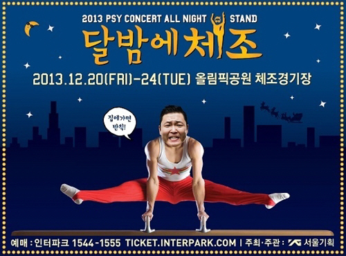 싸이는 12월 20일부터 24일까지 올림픽공원 체조경기장에서 단독 공연 '달밤에 체조'를 개최한다. 이번 공연은 지난 4월 13일 상암월드컵경기장에서 열린 '싸이 콘서트' 이후 8개월 여만의 콘서트다. 매번 크리스마스 시즌의 단독 공연은 예매 순위 1위를 휩쓸 정도로 정평이 난 공연이기도 하지만, '젠틀맨' 해외 활동으로 매년 개최하던 브랜드 공연 '흠뻑쇼'도 거른터라 이번 공연에 대한 관심이 뜨거운 상황. 하지만 그는 어린 학생들을 위해 과감하게 공연 티켓 할인을 결심했다.