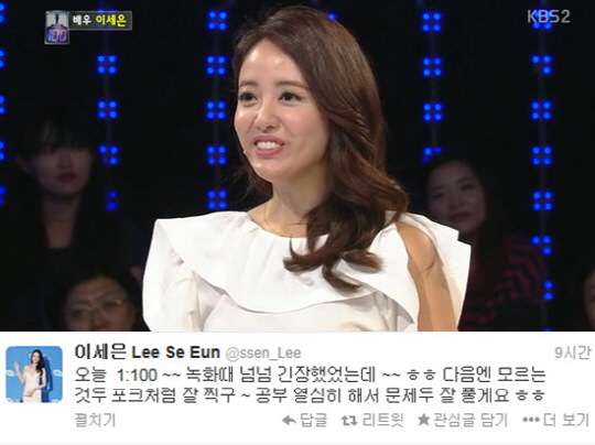 배우 이세은이 '1대100' 출연한 소감을 전했다.