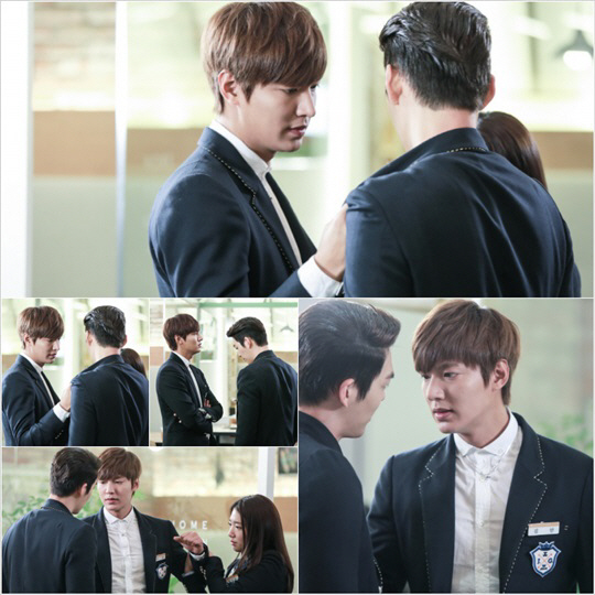 배우 이민호가 김우빈의 멱살을 잡았다.