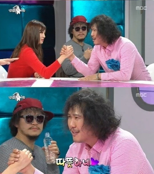 밴드 '장미여관' 보컬 육중완이 배우 이태임의 손을 잡고 사심을 드러냈다.