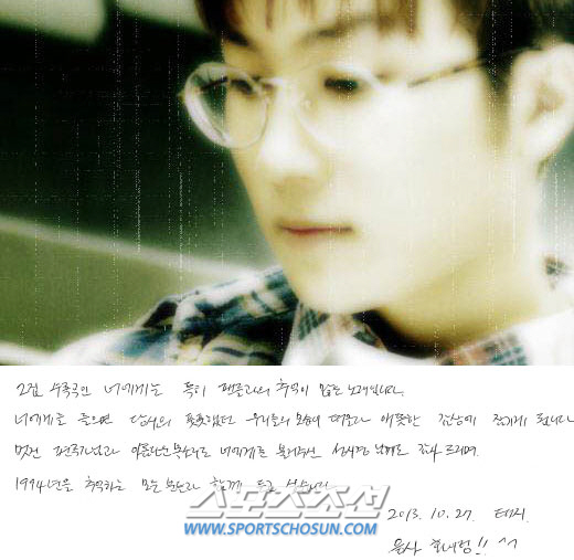 1일 출시된 성시경의 '너에게'가 출시와 동시에 큰 인기를 얻고 있는 가운데, 서태지의 자필 응원 메시지가 엠넷을 통해 공개된 것.