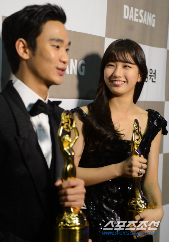 트로피를 손에 쥔 채 무대 뒤쪽으로 이동한 수지는 KBS 드라마 '드림하이'과 광고 촬영을 통해 인연을 맺은 바 있는 김수현과 함께 포토존에 섰다. 이 곳에서 사진 촬영을 마치 수지는 다시 객석으로 가기 위해 발걸음을 옮겼다. 그런데 길을 잘못 들었다. 객석으로 향하는 통로 대신 대기실이 있는 통로로 들어서는 바람에 잠깐 길을 헤매야 했다. 하지만 수지의 얼굴은 밝았다. 수지는 자신과 마주친 스태프들에게 일일이 고개를 숙여서 "감사합니다", "감사합니다"라며 연신 인사를 했다. 또 "진짜 상 받을 줄 몰랐어요"라며 환하게 웃어 보였다.