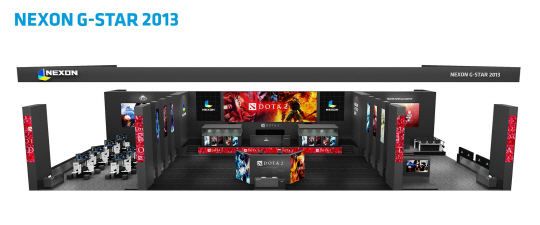 '지스타 2013'의 넥슨 전시관은 총 80부스로, 관람객이 게임 체험에 집중할 수 있는 참여형 공간과 다양한 게임대회 및 프로그램을 관전할 수 있는 공간(메인 무대)으로 구분하여 디자인했다.