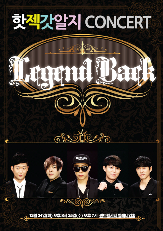 '핫젝갓알지'(문희준, 토니안, 은지원, 데니안, 천명훈)가 첫 콘서트 'Legend Back'을 개최한다.