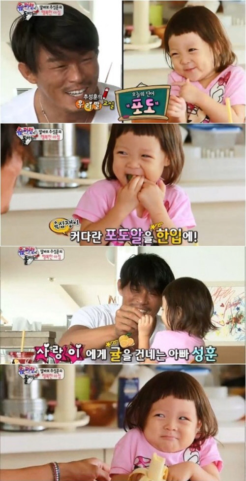 특히 이날 방송에서는 추성훈의 딸 추사랑이 김밥, 귤, 포도 등 다양한 음식을 먹으며 깜찍한 먹방을 선보여 시청자들의 시선을 모았다.