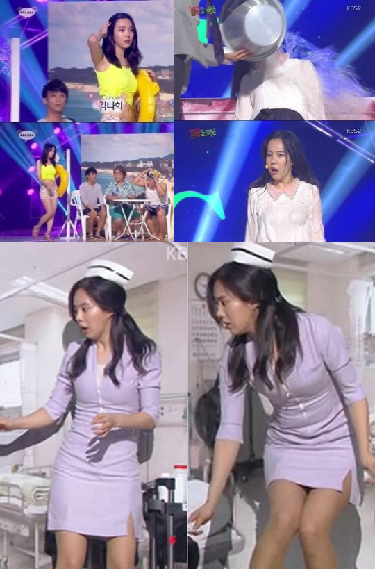 김나희는 지난 3일 방송된 KBS 2TV '개그콘서트'의 '좀비 프로젝트' 코너에서 몸에 딱 달라붙는 간호사복을 입고 등장해 환호를 받았다.