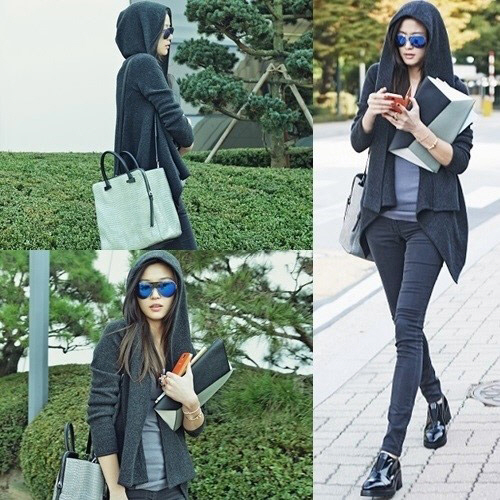 이날 전지현은 극 중 맡은 국민 여배우 천송이 역할답게 캐주얼하면서도 세련된 스타일을 완벽하게 소화해 시선을 모았다. 블랙 톤온톤의 캐주얼한 룩에 고급스런 소재와 투 지퍼 포켓이 포인트인 회색 가방 및 구조적인 형태의 클러치를 함께 매치, 완벽한 스타일을 완성했다.