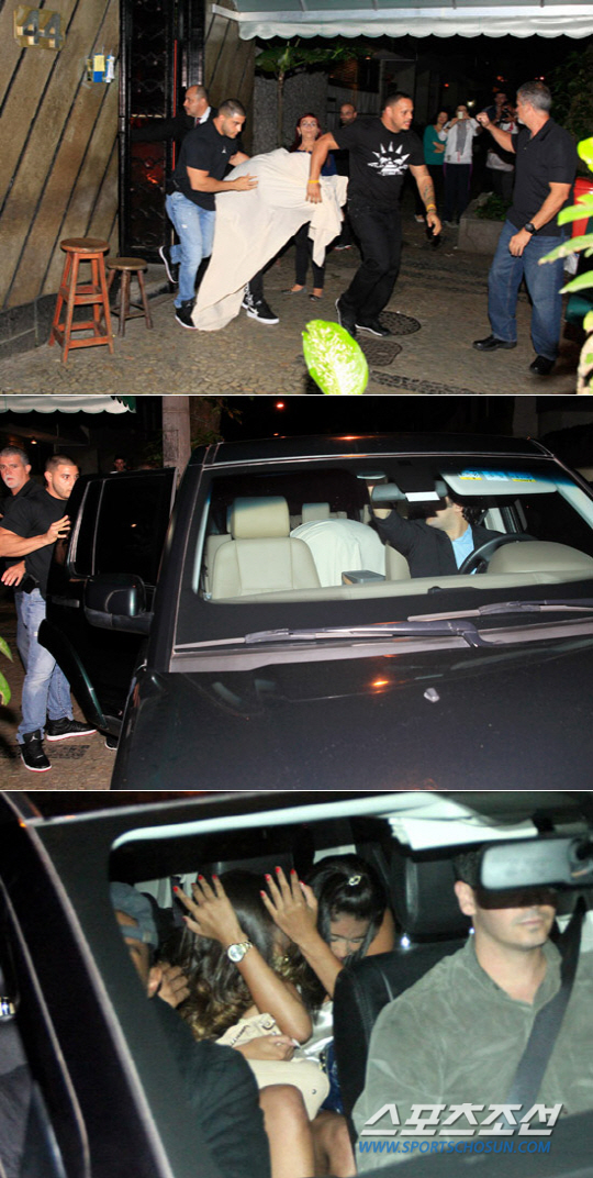 이 과정에서 경호원들은 비버를 파파라치로부터 보호하기 위해 몸에 흰 천을 씌웠으며, 업소 앞에 준비된 SUV 차량을 통해 신속히 현장을 떠났다. 해당 차량에는 신원을 알 수 없는 두 명의 여성도 함께 탑승해 눈길을 끌었다.
