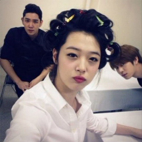 설리 미용실 인증샷, 파마 중에도 굴욕없는 미모…뒤에 훈남들은?