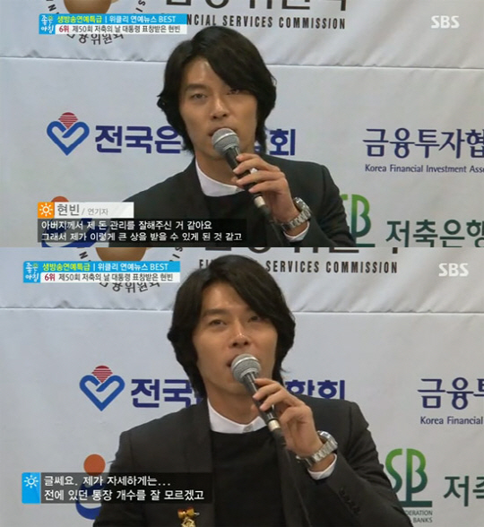 이날 현빈은 지난 17년 동안 무려 35억 원을 저축해 대통령 표창을 받게 됐다.