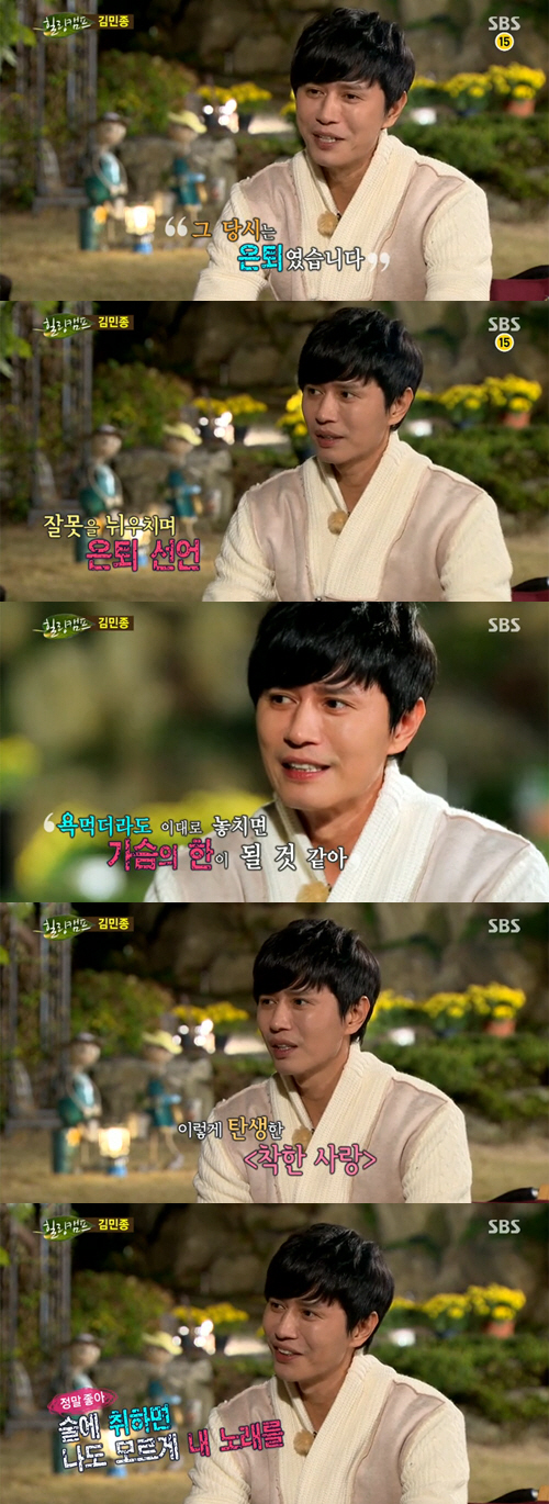 김민종은 지난 4일 방송된 SBS '힐링캠프, 기쁘지 아니한가'에서 전성기 시절 표절 시비로 돌연 가수 은퇴를 선언한 후 1년 만에 다시 앨범을 낸 것과 관련해 솔직하게 고백했다.