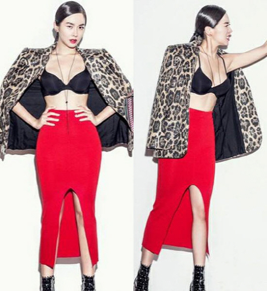 공개된 사진 속 한수아는 머리를 깔끔히 빗어 넘긴 채 강렬한 빨간색 립스틱을 바르고 카메라를 향해 섹시한 눈빛을 선보였다.