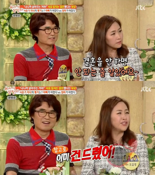 가수 조갑경이 "홍서범과 열애설이 터져 결혼을 하게 됐다"고 고백했다.