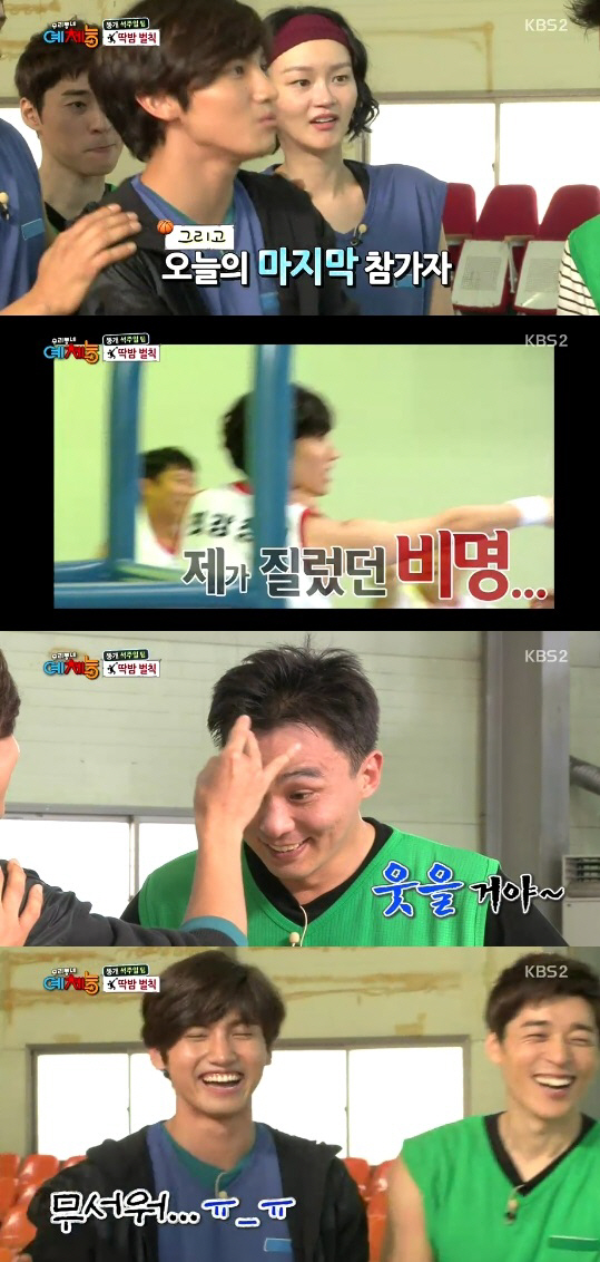 이때 석주일에게 딱밤을 가하는 모습을 접한 최강창민은 이날 다리 부상으로 연습경기에 참여하지 못했지만 우지원팀 소속 이혜정을 대신해 석주일에게 딱밤 벌칙을 가했다.