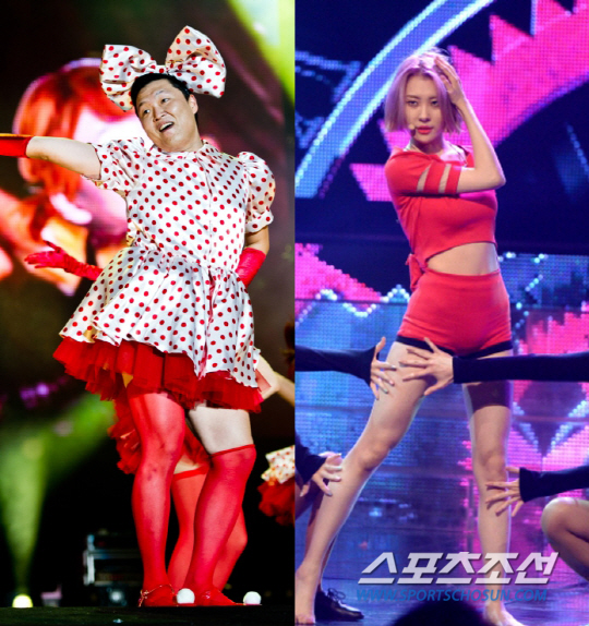 앞서 싸이는 자신의 콘서트에서 여가수 패러디 무대를 여러 번 선보인바 있다.