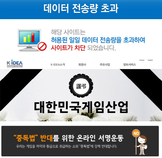 한편, 이날 한국디지털엔터테인먼트협회(K-DIEA) 측은 공식 홈페이지를 통해 게임중독법 반대 온라인 서명을 펼치고 있다. 지금까지(오후 5시 기준) 서명에 참여한 네티즌들은 13만 명을 넘어섰으며, 서명에 참가하는 인원은 앞으로 계속 증가할 것으로 보인다. <스포츠조선닷컴>