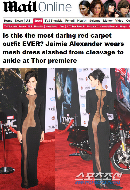 최근 국내에도 개봉된 '토르 :다크월드'에서 조연으로 출연한 제이미 알렉산더(29)가 파격적인 드레스로 눈길을 끈 것.
