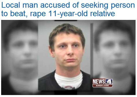 11월 4일(현지시각) 미국 허핑턴포스트 등 외신에 따르면 세인트루이스주에 사는 앤서니 브링크만(32·남)이 인터넷에 "내가 보는 가운데 11살 난 딸을 성폭행해줄 남자를 찾는다"는 광고를 낸 혐의로 경찰에 체포됐다.