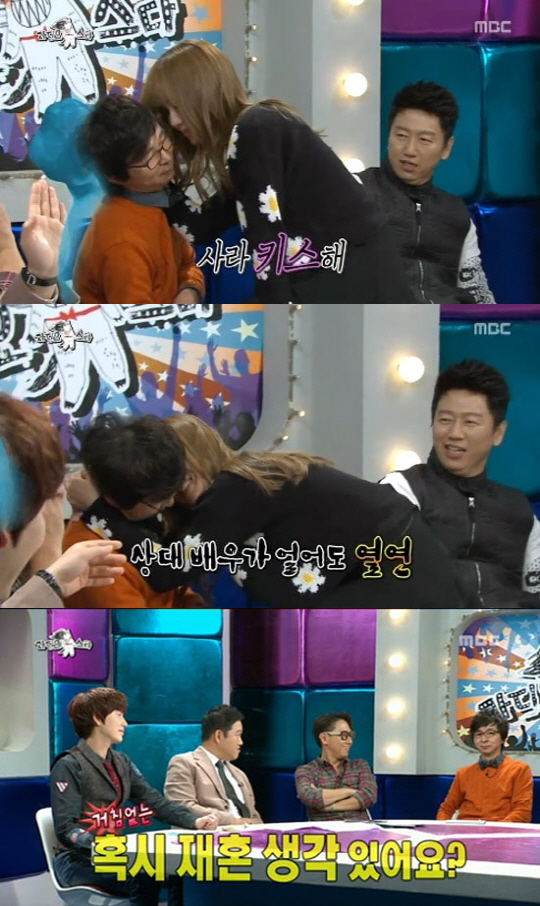그러자 MC 윤종신은 "최근 가장 강한 스킨십 아닌가"라며 놀려댔고, MC 김구라 또한 "재혼 생각이 드냐?"라며 기습 공격을 퍼부어 주위를 폭소케 했다.