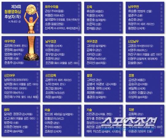 제34회 청룡영화상 후보가 결정됐다. '한국영화 르네상스'라는 말이 나올 정도로 영화계가 호황을 누리고 있는 만큼, 쟁쟁한 후보들이 마지막까지 치열한 경합을 벌였다. 이에 제34회 청룡영화상을 통해 2013년 한국영화 트렌드를 짚어봤다.
