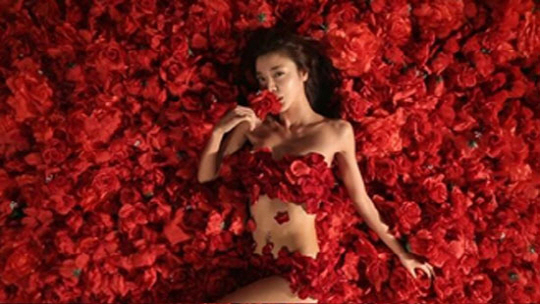 특히 잘록한 허리라인과 함께 쇄골, 각선미 등을 뽐낸 채 누워있는 김규리는 새빨간 꽃들로 주요 부위만 겨우 가린 후 전라노출을 감행해 많은 이들의 시선을 끌고 있다.