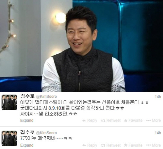 12일 김수로는 자신의 트위터에 "칠봉이도 매력 쩌네. 이렇게 멀티캐스팅이 다 살아있는 경우는 '신사의 품격' 이후 처음 본다"면서, "군대 다녀와서 8, 9, 10회를 다 볼 걸 생각하니 좋다. 응사앓이. 나의 1994년은 내 인생 최고의 해 중 하나였다"라는 글을 남기며 '응사앓이' 근황을 전했다.
