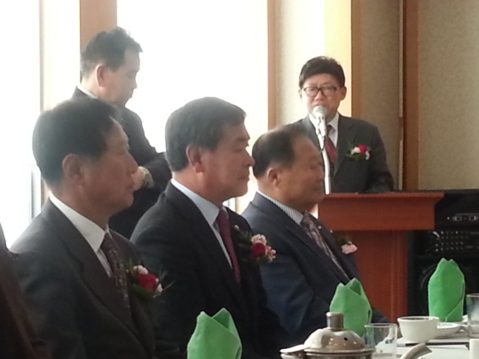 | 한국방송코미디협회 엄용수 회장이 뉴욕청과협회 관계자들이 참석한 가운데 MOU체결을 위한 인삿말을 하고 있다.. |