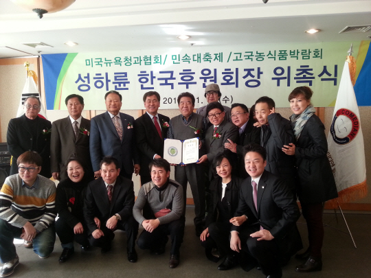 | 엄용수 이상해 이용식 등 코미디협회 임원들과 뉴욕청과협회 관계자들이 참석한 가운데 성하륜 회장의 후원회장 위촉식을 가졌다. |