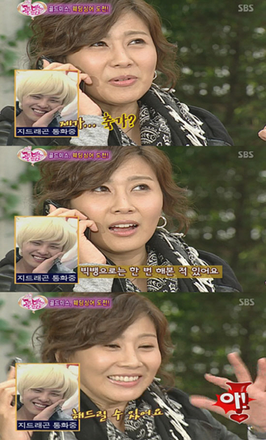 그러자 지드래곤은 "제가요? 빅뱅으로는 축가를 해본 적 있어요"라고 다소 당황한 기색을 보였지만 양정아가 "같이 와도 되고…"라고 재차 조심스레 부탁하자 "해드릴 수 있어요"라고 답했다.
