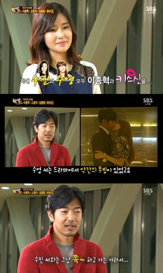 그러자 이종혁은 "수영씨는 드라마에서 약간의 무빙이 있었고, 수진 씨와는 그냥 쪽 하고 가는 거라서 별로 감흥은 없었다"라고 자세하게 설명했다.