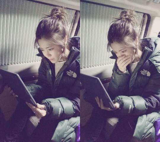 공연을 마치고 분장을 지우기 무섭게 부랴부랴 차 안으로 들어와 태블릿 PC를 찾아 VOD서비스로 방송을 보고 있는 형편이다.
