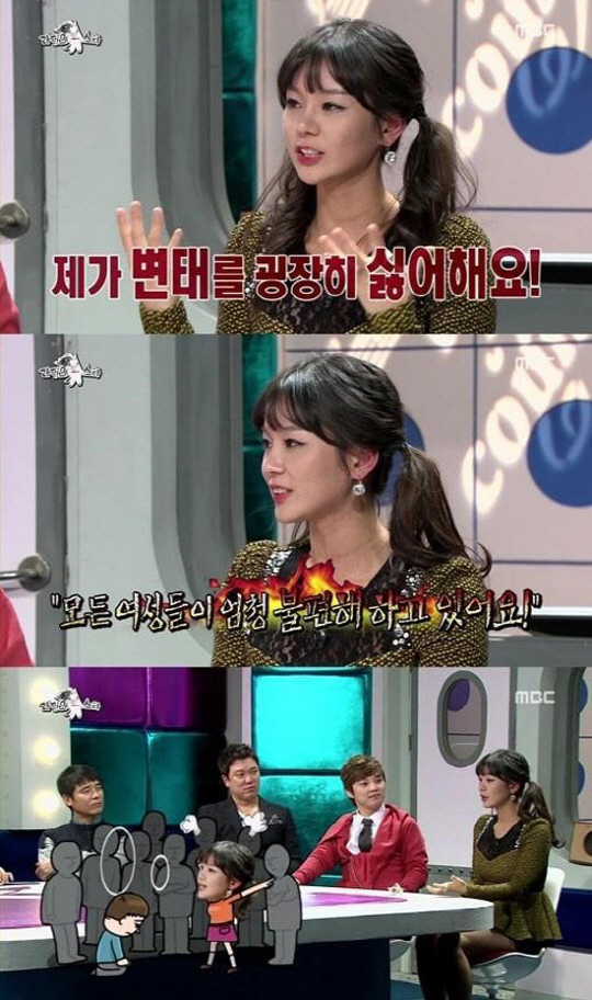 이날 방송에서 맹승지는 "과거 빵가게에서 빵을 먹고 나오는데 한 아저씨가 내 가슴에 얼굴을 들이댔다. 이건 21세기 서울에서 있을 수 없는 일이라고 생각했고 충격이었다"고 당시를 회상했다.