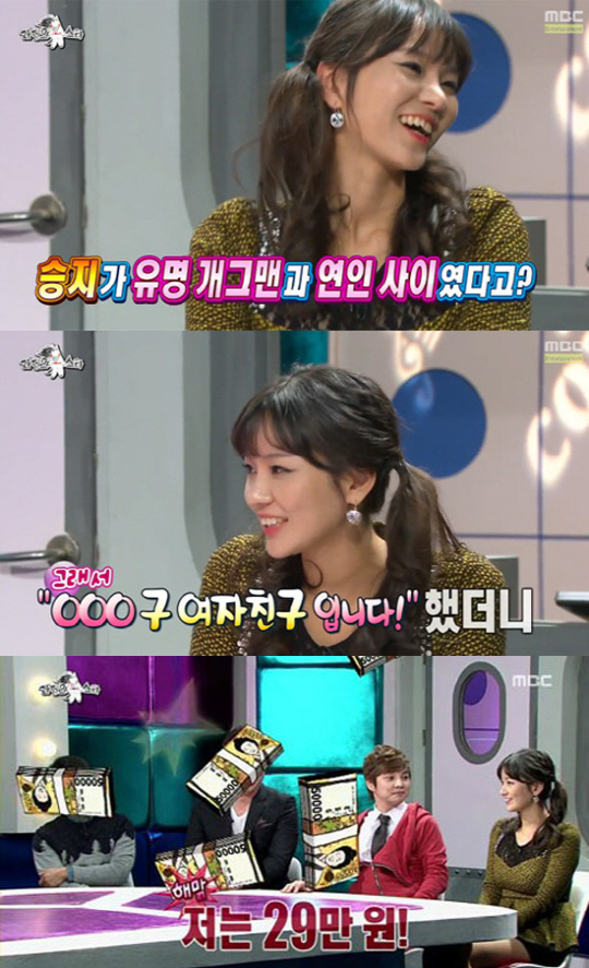 이날 MC들은 맹승지에게 "유명한 개그맨과 연인 사이었다고 들었다"고 질문했다.