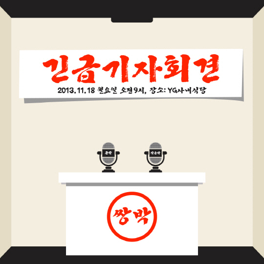 이미지에는 큰박, 작은박의 마이크와 '쌍박' 마크가 그려진 단상의 이미지도 함께 놓여있어 그럴듯한 분위기를 자아내고 있다.