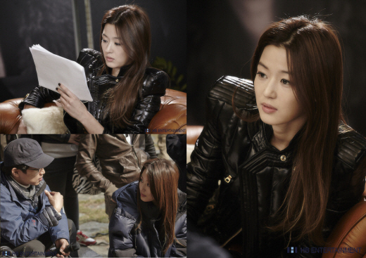 사진에는 긴 생머리에 검은색 가죽 재킷을 입은 전지현이 대본에 집중하고 있는 모습이 담겨 있다. 유부녀라고는 믿기지 않는 변함 없는 청순 미모를 자랑하는 전지현의 모습이 눈길을 끈다.