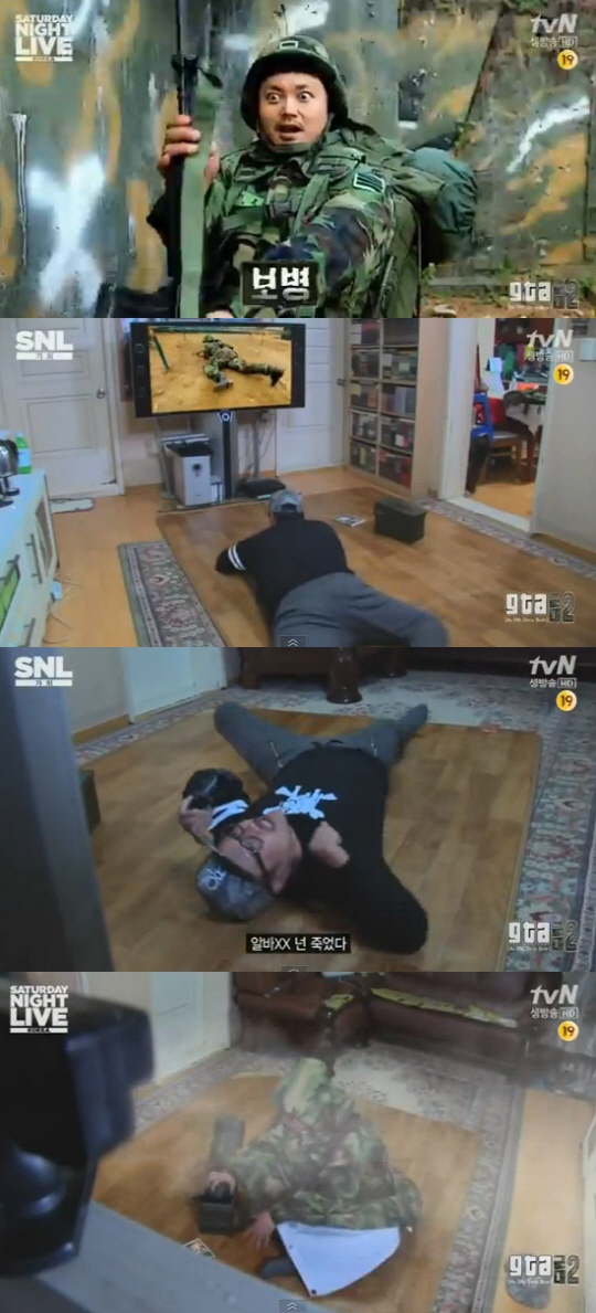 16일 방송된 'SNL 코리아'에서는 지난주에 이어 온라인 게임 'GTA(Grand Theft Auto)'를 패러디한 GTA 군대2 편이 방송됐다.
