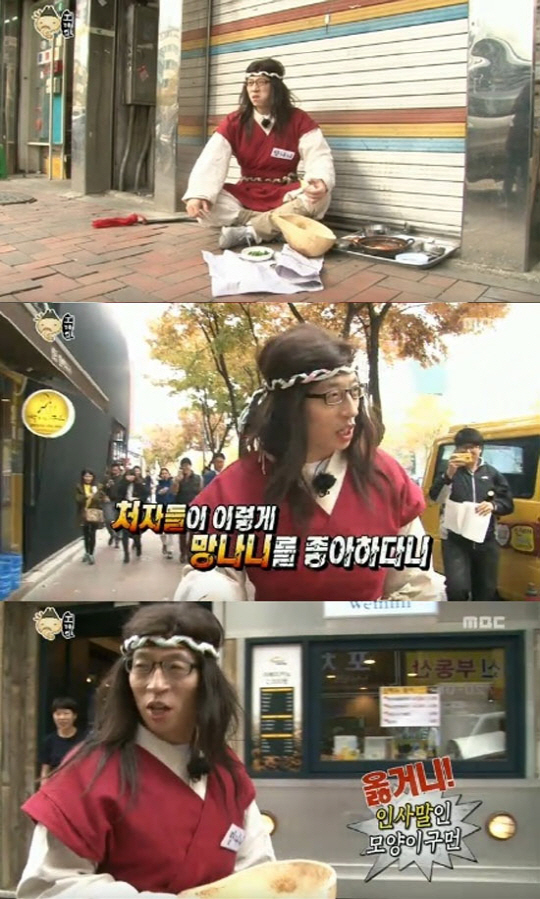 그런가 하면, 자신에게 환호하는 여성들을 본 유재석은 "신기하다. 망나니가 이렇게 인기가 좋단 말이냐. 2013년 이곳은 살만한 곳이다"라며 상황극을 벌였고, 자신을 보고 "대박"이라고 외치는 시민들의 말에 "인사말인가보다"라며 사람들에게 "대박"으로 인사를 건네는 재치를 발휘해 시청자들을 폭소케 했다.