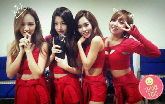 수지는 17일 자신의 트위터에 미쓰에이 멤버 4명이 함께 무대 의상을 입은 채 포즈를 취한 사진을 올리면서 "컴백하고 첫 1위에요"라고 감격해 했다.