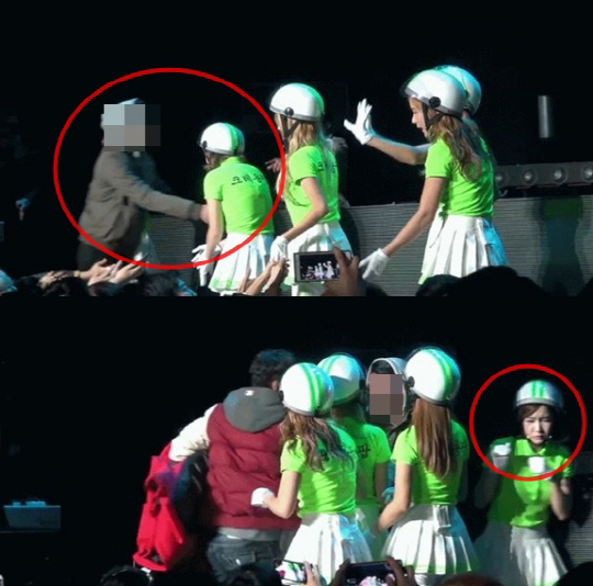 앞서 지난 14일 크레용팝은 충남 천안에서 열린 한 행사에서 공연을 마치고 내려오던 중 한 남성이 무대에 위로 올라와 초아의 신체 일부를 더듬는 사고가 발생했다.