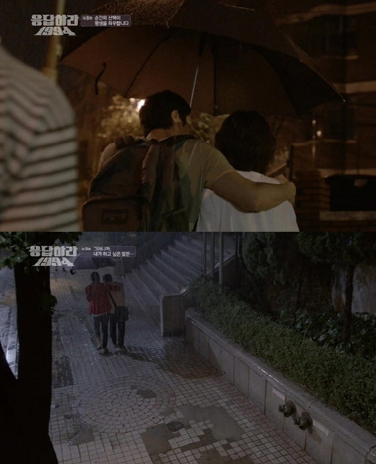 여기서 쓰레기는 성나정과 우산을 쓰고 갈 때는 성나정이 비를 맞지 않도록 우산을 기우려 주는 매너를 보여주는 반면 빙그레와 우산을 쓰고 갈 때는 자신 쪽으로 우산을 기울이며 빙그레는 우산을 쓴 것 같지 않게 다 젖었다.