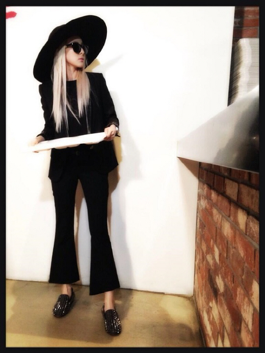 공개된 사진 속 산다라박은 자신의 소속사인 YG엔터테인먼트 구내식당에서 식판을 들고 있는 모습. 모자에 선글라스부터 의상까지 모두 블랙으로 통일한 시크한 패션을 선보인 산다라박은 식판을 들고 멍하게 서 있어 보는 이의 웃음을 자아내고 있다.