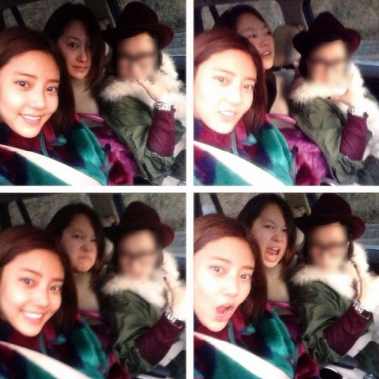 사진 속에는 자동차 안에서 카메라를 향해 다양한 표정을 짓고 있는 손담비와 신애의 모습이 담겨 있다.