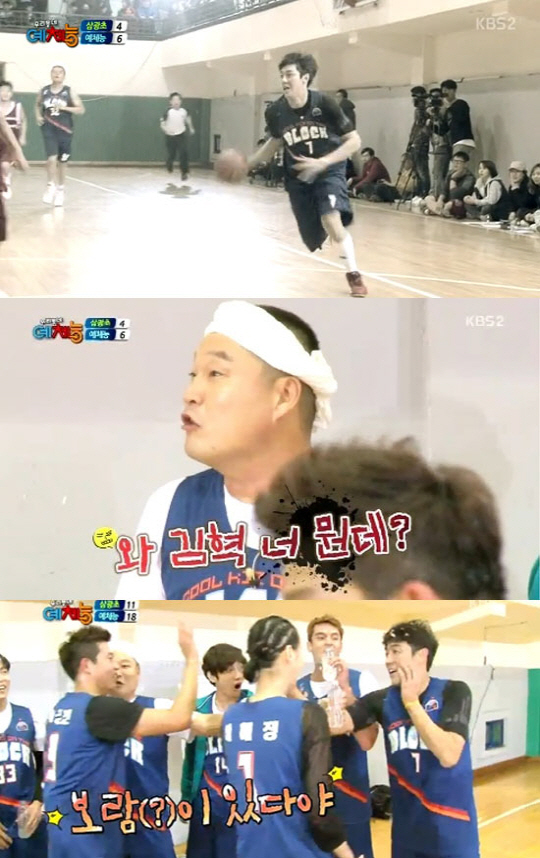 특히 김혁은 높고 우아한 깔끔한 레이업 슛을 선보였고, 김혁의 완벽한 슛에 당황한 강호동은 "뭔데? 김혁 너 뭔데? 장난 아닌데"라며 그의 농구 실력에 감탄을 쏟아냈다.