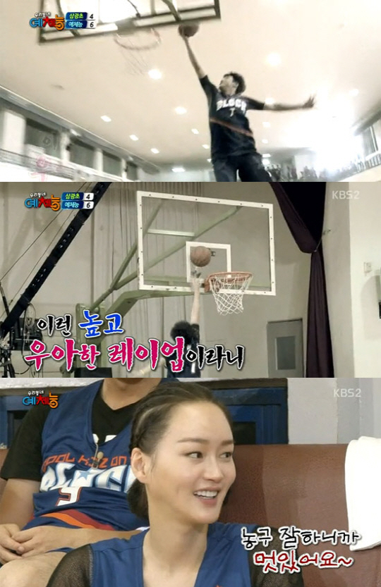 19일 밤 방송된 KBS 2TV '우리동네 예체능'에서는 강호동, 서지석, 줄리엔강, 존박 등 기존 멤버와 새로 투입된 멤버 김혁이 전국 초·중·고등학교 1위 팀들과 농구 경기를 펼치는 모습이 그려졌다.