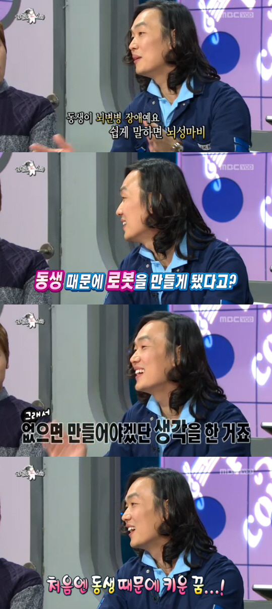그는 "어렸을 때는 로봇이란 게 뭔지 몰랐다. 근데 동생이 몸이 불편하니까 식구들이 다 동생한테 매달릴 수밖에 없었고, 어머니는 항상 동생 곁에 계셨다"며 "그걸 보고 누군가 도와줬으면 좋겠다는 생각을 했는데 만화를 보면 로봇들이 사람을 구해주더라. 그래서 로봇이 있으면 되겠다는 생각을 했다"고 말해 감동을 안겼다. 이어 "하지만 로봇은 세상에 없었고, 그래서 만들어야겠다는 생각을 했다"며 "지금은 로봇을 만드는 다른 이유가 많지만 처음 시작은 동생 때문이었다"고 덧붙였다.