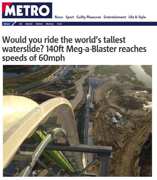 '메가 블래스터'라는 이름의 이 워터슬라이드는 현재 세계에서 가장 높은 브라질의 한 리조트에 설치된 워터슬라이드보다 1.67m 정도 더 높다.