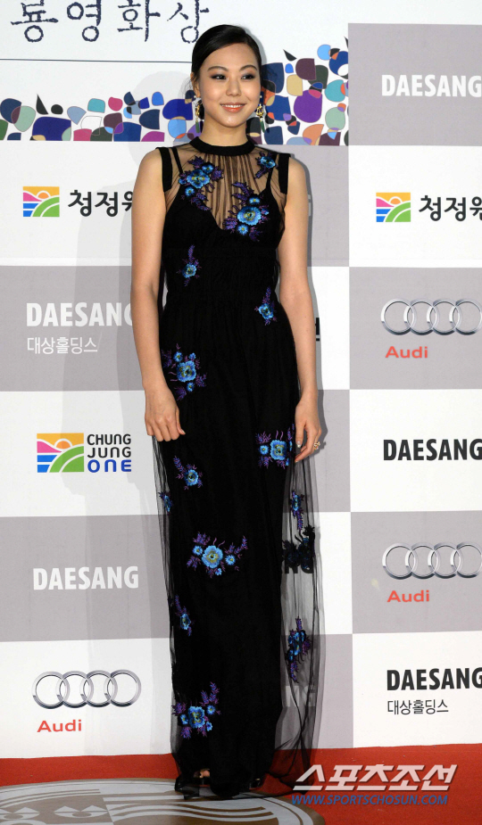 김민희의 레드카펫 룩 보는 재미가 쏠쏠하다. 김민희는 블랙 시스루 드레스에 블루와 바이올렛 플라워 자수가 디테일이 들어간 드레스를 선택했다.블루 드레스를 선택했던 청룡의 여인들이 수상 확률이 높았던 것을 의식한 탓일까. 김민희의 플라워 자수는 단연 빛이 났다. 김민희의 스키니한 모델 몸매에 에스닉한 디테일이 어울리며, 세련된 레드카펫 룩을 선보였다.