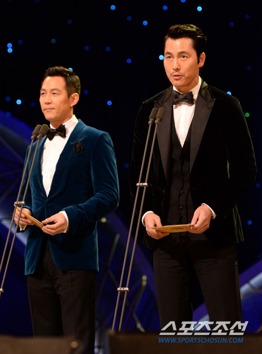 이들은 22일 오후 서울 경희대 평화의 전당에서 열린 제 34회 청룡영화상 시상식에 시상자로 참석했다. 이들이 시상자로 호명돼자 관객들은 환호로 답했다. 20년지기 절친 사이로 알려진 정우성과 이정재는 "오랜만이죠", "아침에 봤죠"라며 인사를 주고 받았다. 이어 이정재는 "아름답게 입고 오신 여배우들도 참 많은데, 몰랐다. 정우상이랑 함께 시상하는지"라며 아쉬움을 드러냈다. 이에 정우성은 "상 받으러 온 줄 알았다"라며 농담으로 응수했다.