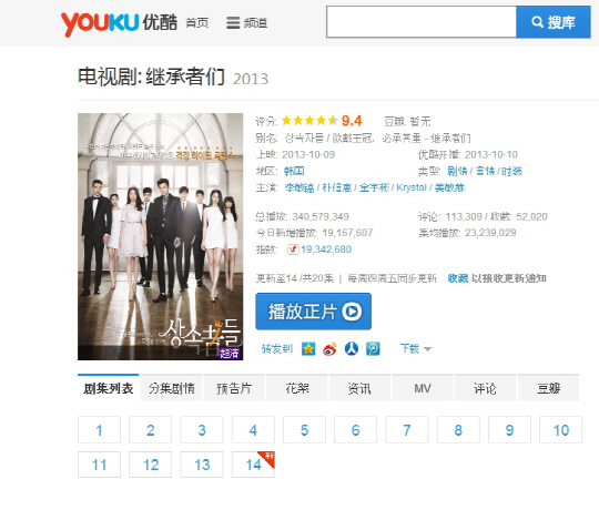 중국 현지 관계자는 "한류 열풍을 몰고 온 '미남이시네요'를 비롯 '넌 내게 반했어''이웃집 꽃미남'까지 출연작마다 중국에서 사랑받은 박신혜 차기작이라는 점에서 '상속자들'은 방송 전부터 관심! 이 높았다. '상속자들'이 중국에서 상상 이상의 인기를 모으고 있어 탄탄했던 박신혜 열기 또한 하루가 다르게 뜨거워지고 있다"고 현지 분위기를 전했다.